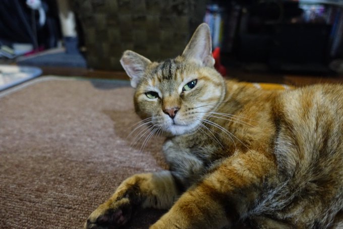 いつものコーナーでゴロンゴロンしたり伸びたりあくびしたり毛繕いしたり。そしてなぜか急に戻ってくる。