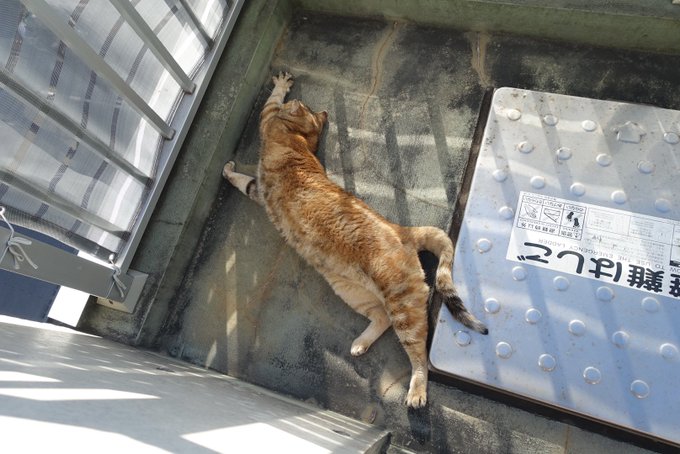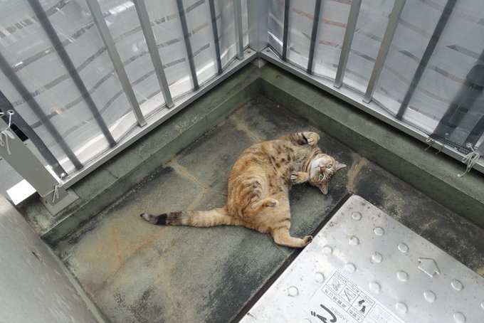 いつものコーナーでまずはコインパーキング監視。倒すと毛繕い。