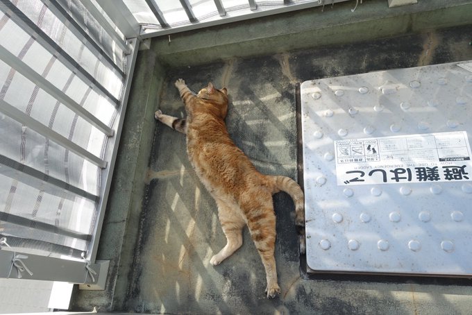 干してるどらやきちゃんのトイレ前で伸びてゴロン。いつものコーナーに移動してさらにゴロン。